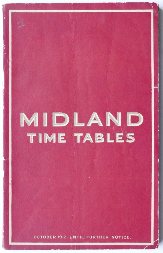 | 613 | Midland Railway public timetable booklet dated October 1912. Foolscap sized, maroon card covers, 142pp plus map (torn). | £20 |  |