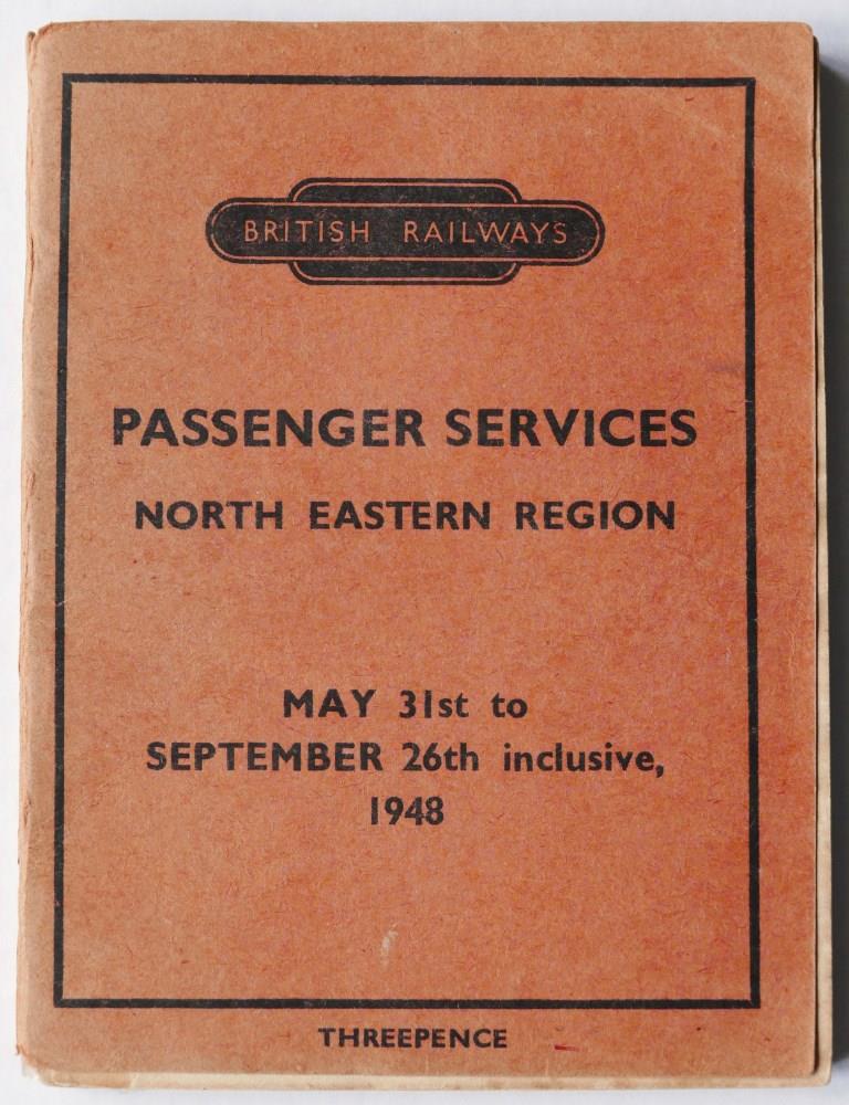 | 67 | BR(NE) public timetable booklet for all the region’s services. Orange covers, 138pp plus fold out map (detached), dated May 1948. | £16 |  |