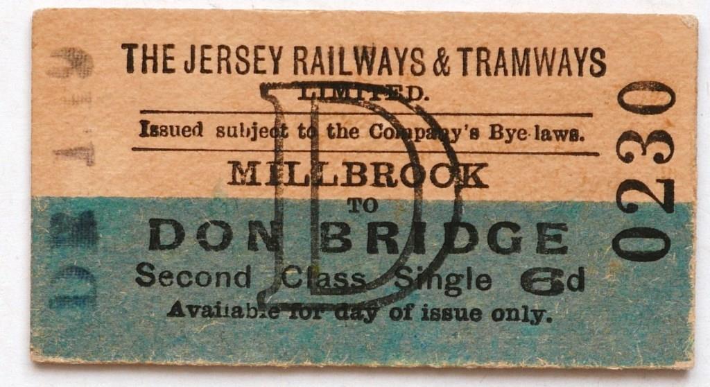 | 689 | Jersey Railways & Tramways Ltd whole Edmondson 2nd class single from Millbrook to Don Bridge. Issued. | £55 |  |