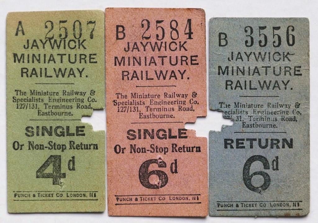 | 694 | 3 Jaywick Miniature Railway punch type tickets. | £75 |  |