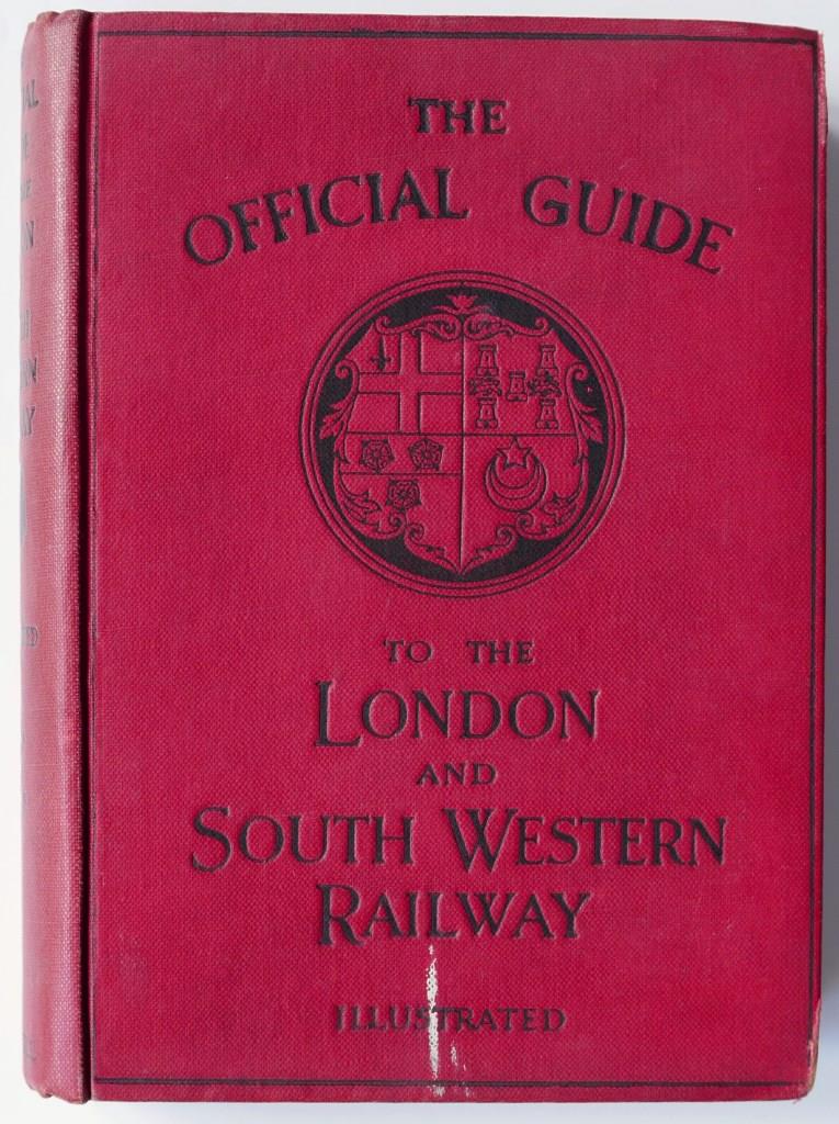 | 25 | Cassell’s ‘Official Guide to the LSWR’. Red cloth bound hardback covers show coat of arms. 424pp plus maps (repairs to some). Dated 1912. Bindings loose. | £22 |  |