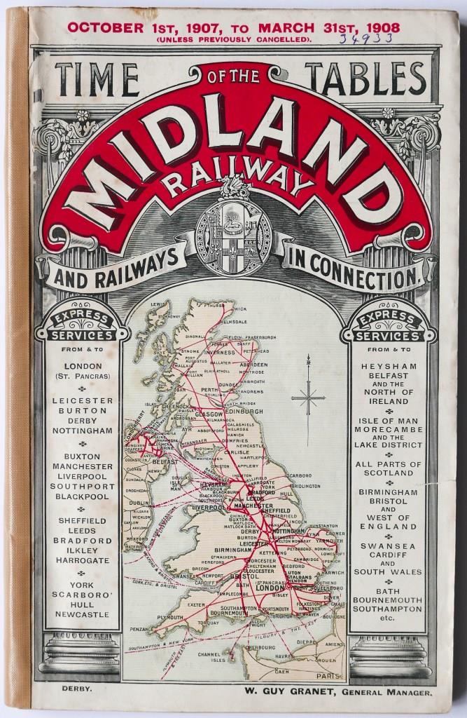 | 640 | Midland Railway public timetable booklet dated October 1907. Foolscap sized, 208pp plus maps. Coloured pictorial covers show system map. Spine taped. | £15 |  |