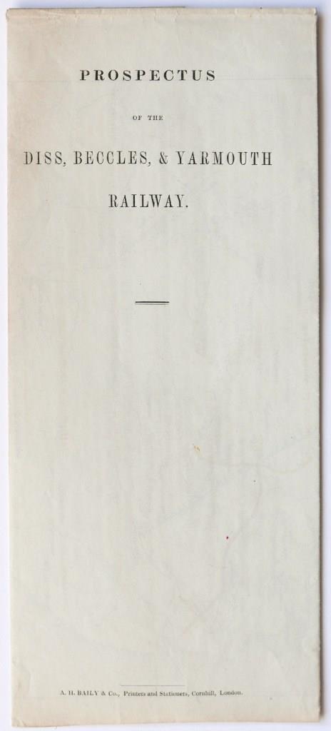 | 654 | Diss, Beccles and Yarmouth Railway prospectus. Foolscap sized, 4pp including map of the line. Undated, trimmed at top and bottom edges, not affecting text. | £22 |  |