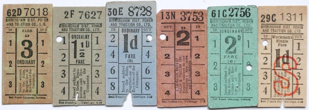 | 727 | 6 Birmingham District Power & Traction Company numerical punch type tickets Values up to 3d. | £40 |  |