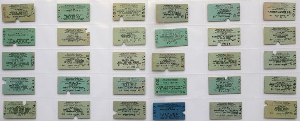| 768 | Approx 100 Metropolitan Railway whole Edmondson tickets on green coloured card. Many issued. Back damage and creasing to a few. | £70 |  |
