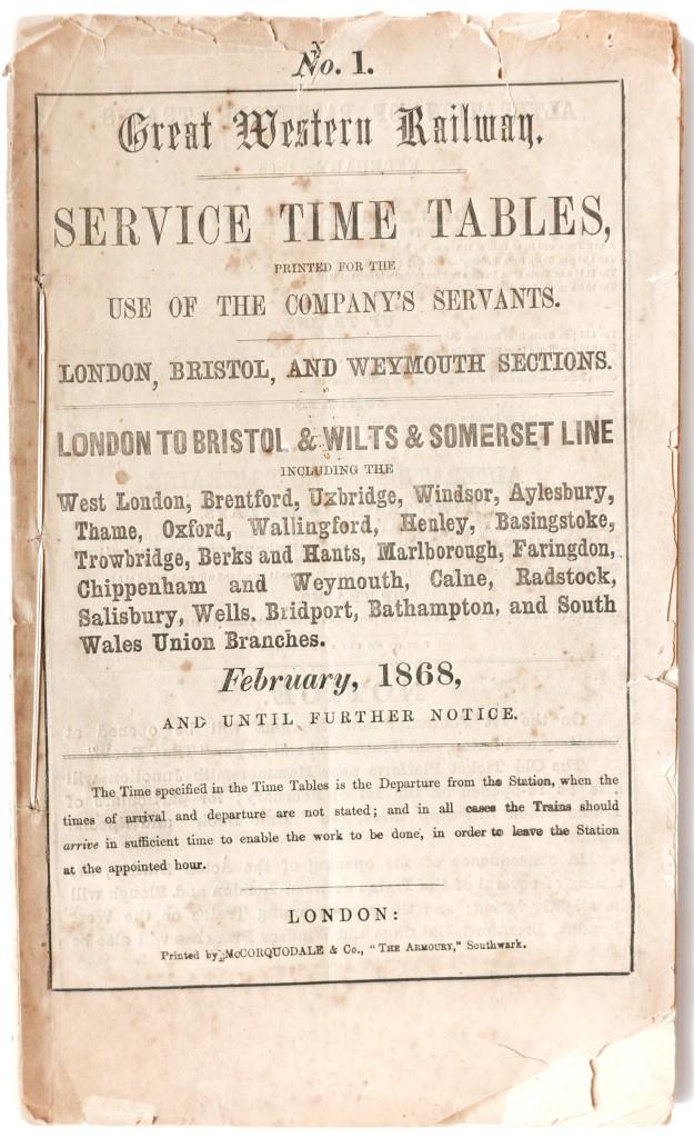 | 84 | BR(W) No.4 section service timetable – Bristol to and from Didcot, Standish Junction, Severn Tunnel Junction and Highbridge. 372pp, dated June 1953. Disbound. | £18 |  |