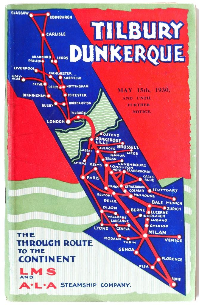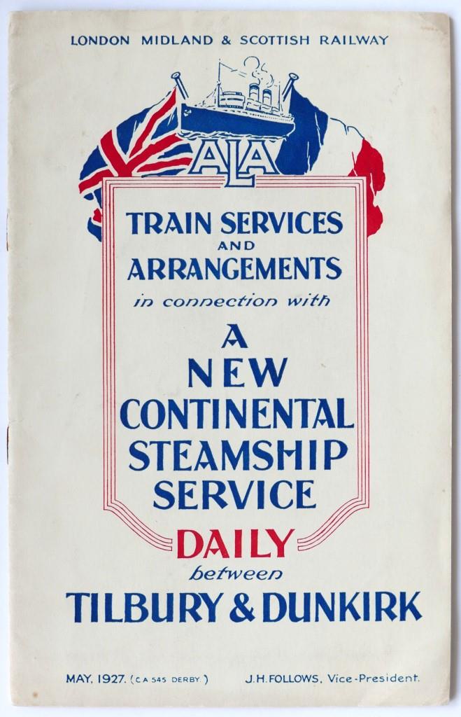 | 693 | SR & LNER joint 16pp booklet with fold out map, ‘Train Ferries for Trade with the Continent’. Details facilities available on the Dover-Dunkerque and Harwich-Zeebrugge services. Nice pictorial coloured cover. Circa 1930s. | £8 |  |