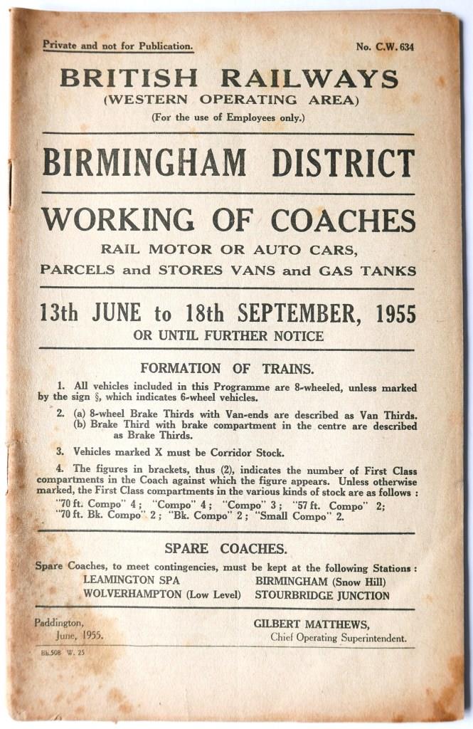 82 | BR(W) ‘Coach Working Programme’ booklet. Green covers, 340pp dated May 1969. | £10 |  |