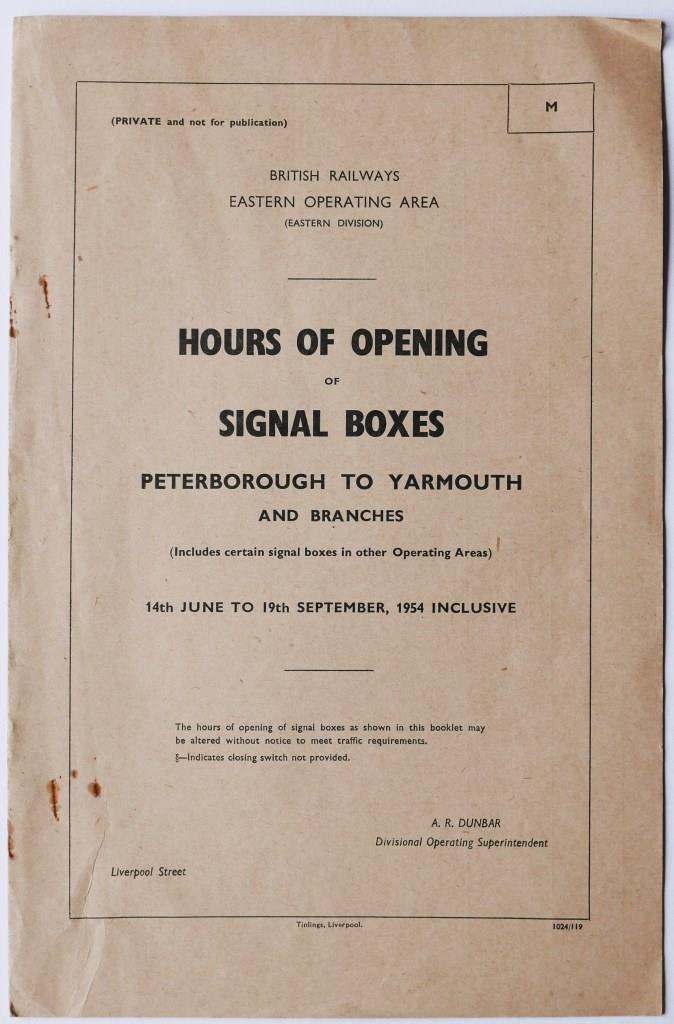 101 | BR(M) Midland Lines booklet ‘Hours of Opening of Signal Boxes’. 60pp dated September 1960. | £8 |  |