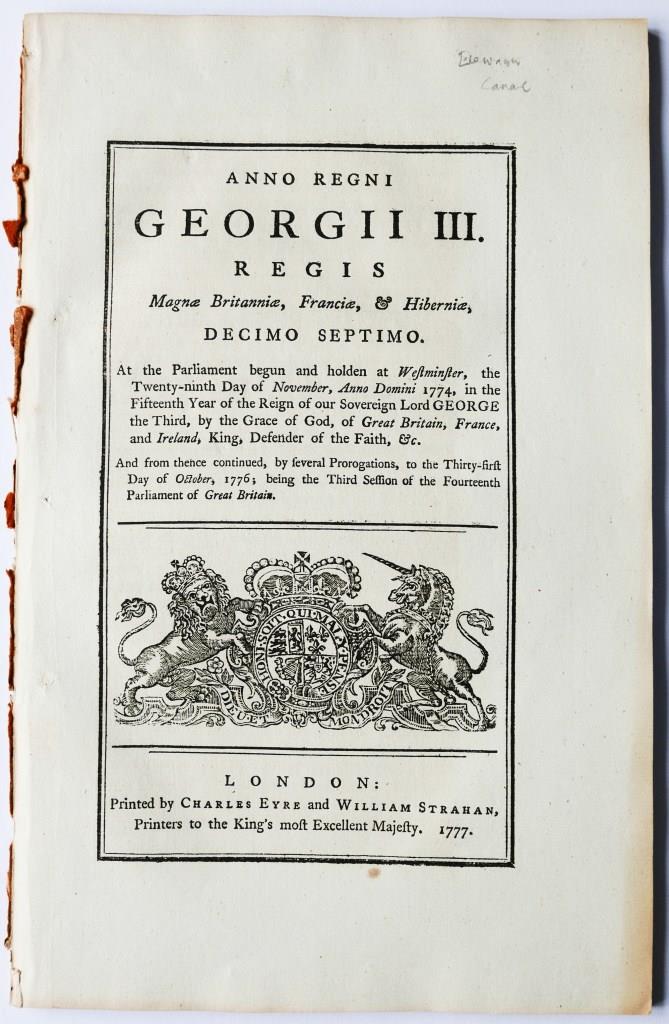 29 | Act for building the Erewash Canal from Long Eaton to Langley Bridge. 76pp dated 1777. Disbound. | £24 |  |