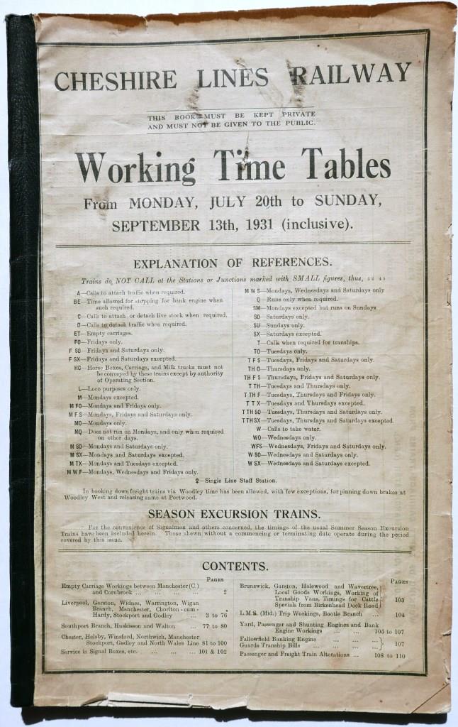 109 | BR(M) Midland Division section J working timetable of freight trains between Trafford Park Sidings, Manchester (Midland Junction) and Rowsley and branches. 46pp dated September 1953. | £22 |  |