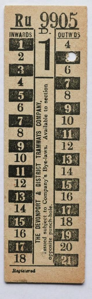 706 | Devonport & District Tramways Company 1d numerical punch type ticket. | £32 |  |