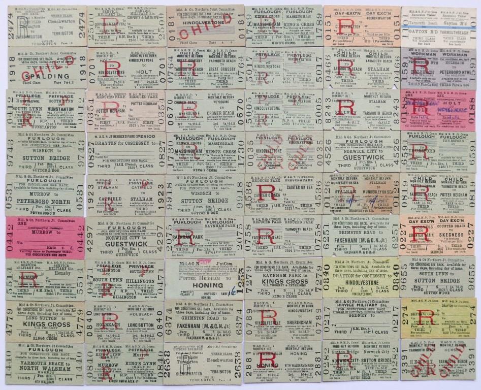 758 | Approx 130 M&GN whole Edmondson tickets. Stations featured include Fleet, Bourne, Norwich City, Whaplode, Moulton, etc. A few issued. | £55 |  |