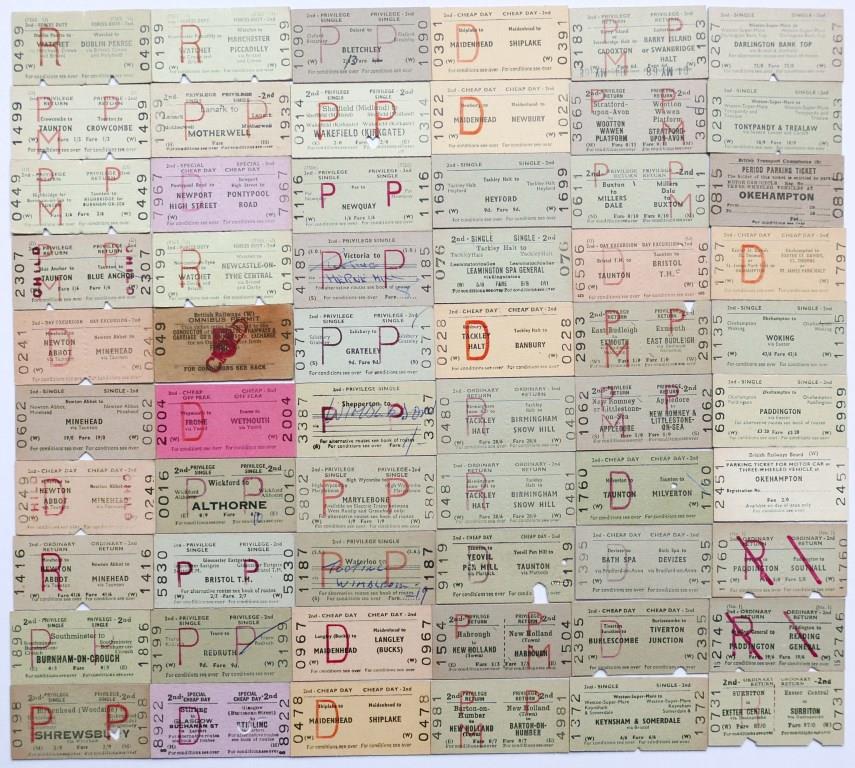 736 | Approx 70 BR(M) whole Edmondson tickets all with red ‘P’ overprint. Many Midlands and NW England areas. Most issued. | £70 |  |