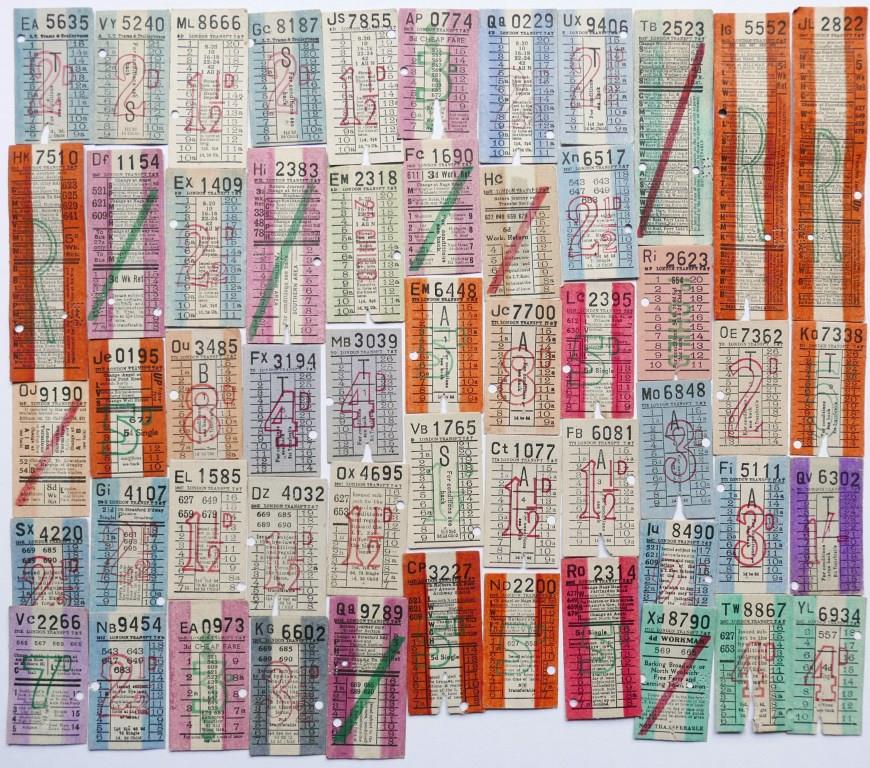 763 | Approx 200 London Transport Buses geographical punch type tickets from route numbers 40 – 59/59B from the 1941 – 48 period including wartime prints. Large overprints, values up to 8d. No apparent duplication. | £28 |  |