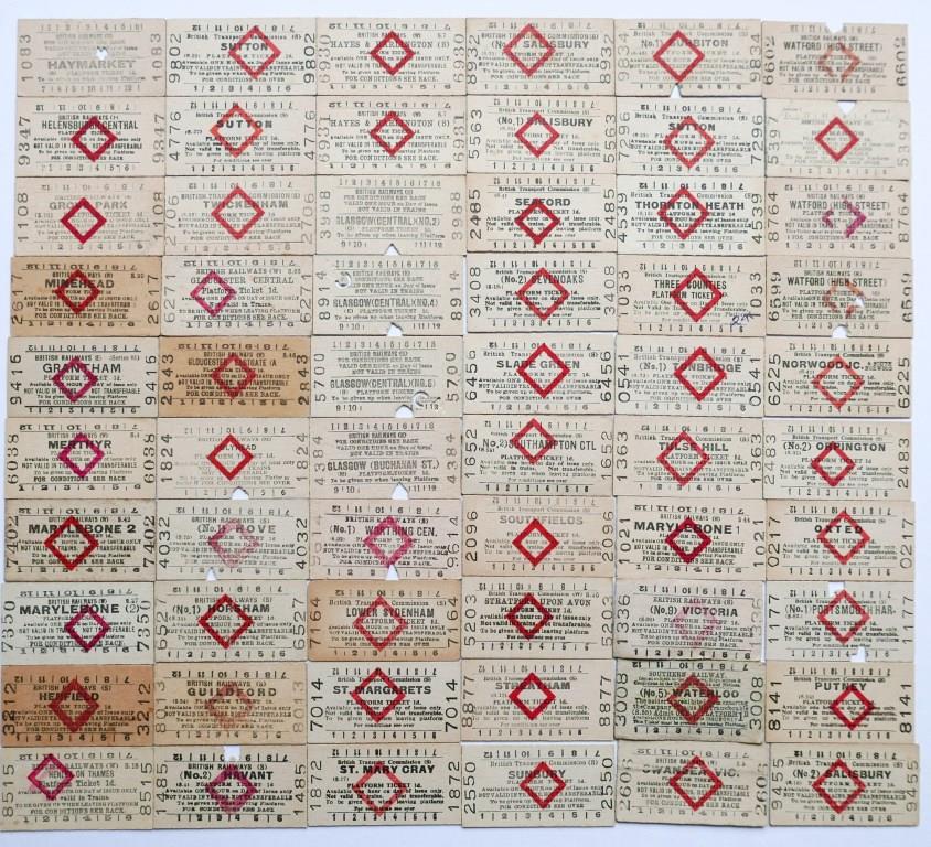 775 | Approx 135 BR Edmondson 2d red diamond platform tickets. Majority are Southern Region stations. Occasional duplication. | £85 |  |