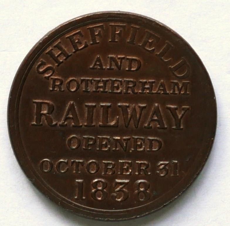 690 | Sheffield and Rotherham Railway brass ’Omnibus Check’ token. 1" diameter with ’Omnibus No.3 Check’ on front and ’Sheffield and Rotherham Railway Opened October 31st 1838’ on reverse. | £28 |  |