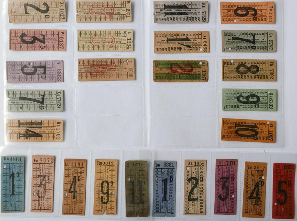 719 | 26 East Surrey Traction Company numerical punch type tickets in two different styles. Values up to 2/-. | £75 |  |