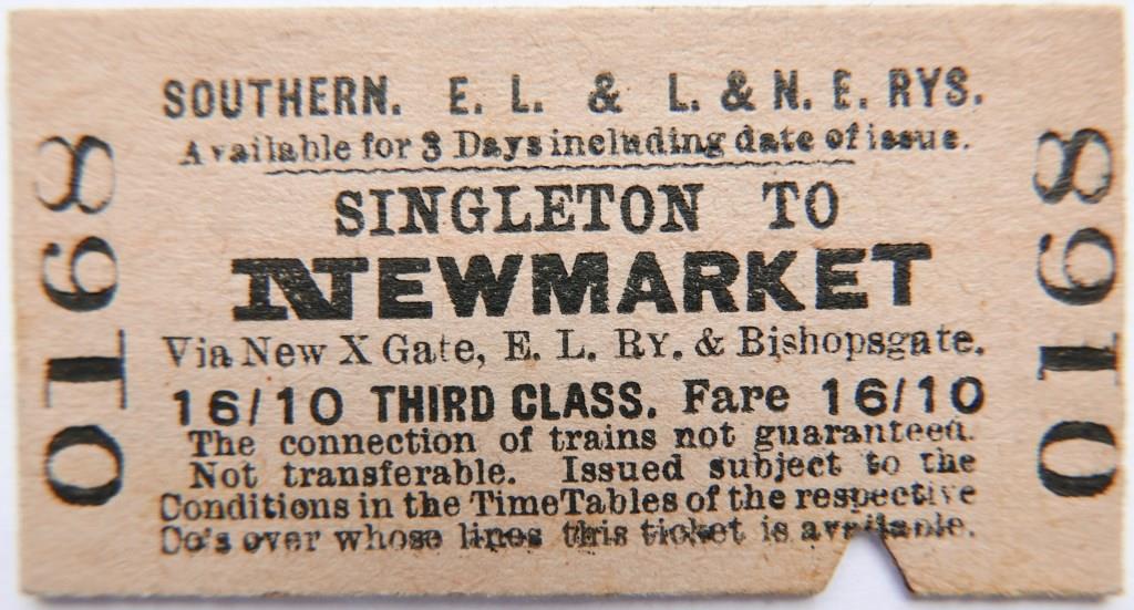 732 | Southern, East London & LNE Railways joint whole Edmondson ticket from Singleton | £140 |  |