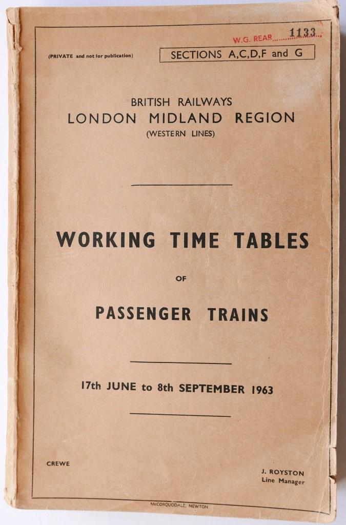 132 | BR(M) Western Lines sections A,C,D,F and G working timetable of passenger trains. 600+pp, dated June 1963. | £12 |  |