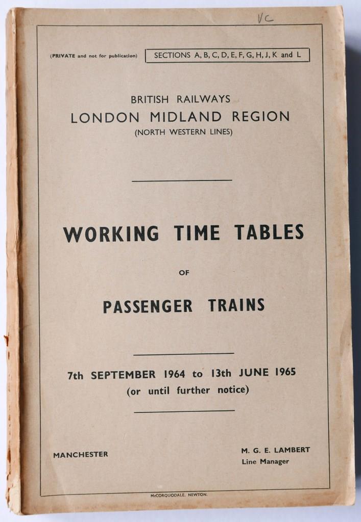 142 | BR(M) North Western Lines sections A - L working timetable of passenger trains. 700+pp dated September 1964. | £22 |  |