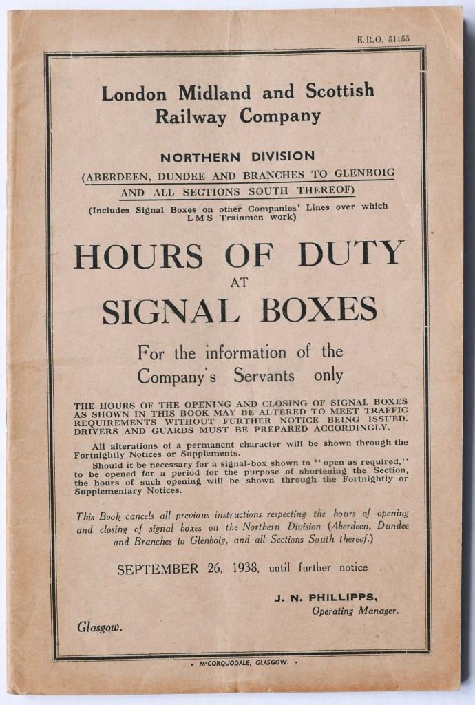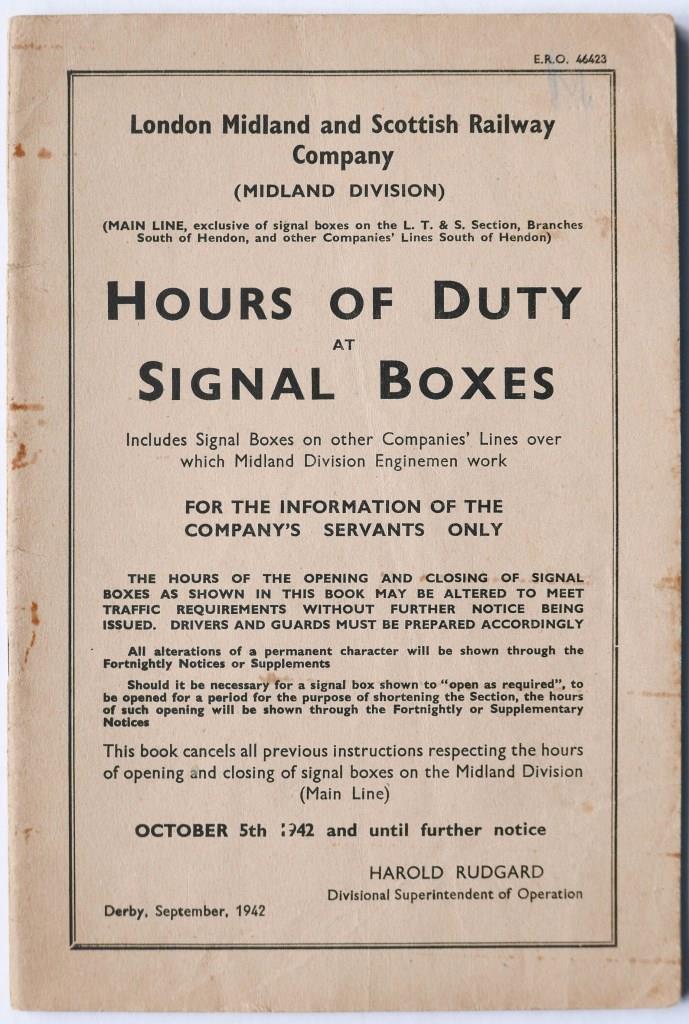54 | BR(M) Central Division booklet ‘Hours of Duty at Signal Boxes’. 32pp dated September 1949. | £24 |  |