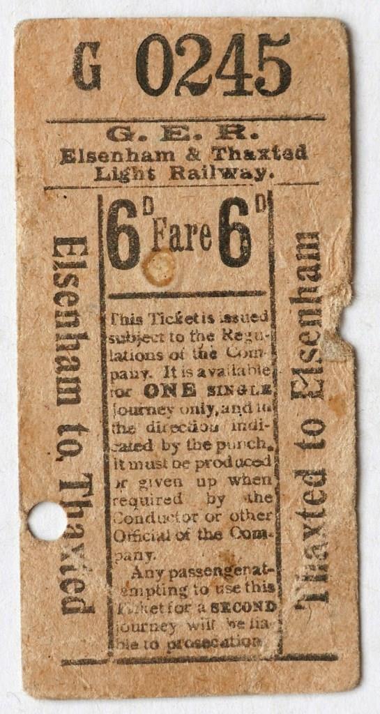 687 | GER Elsenham & Thaxted Light Railway 6d punch type ticket. Remnants of glue on back. | £13 |  |