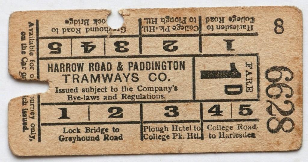 692 | Harrow Road and Paddington Tramways Co 1d geographical punch type ticket. | £65 |  |