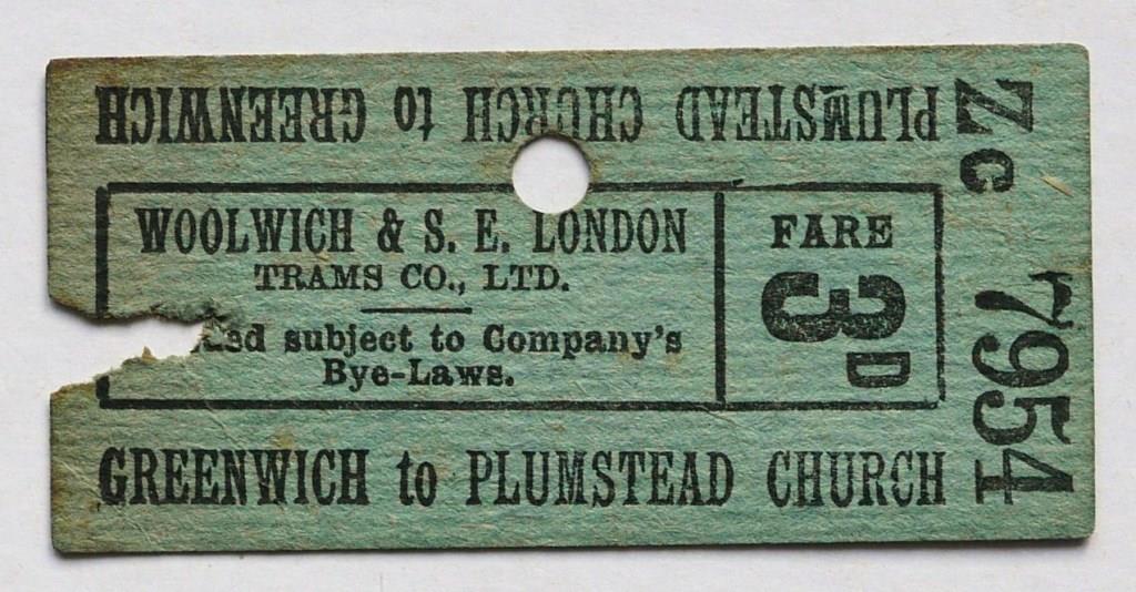695 | Woolwich and South East London Trams Co 3d geographical punch type ticket. | £25 |  |