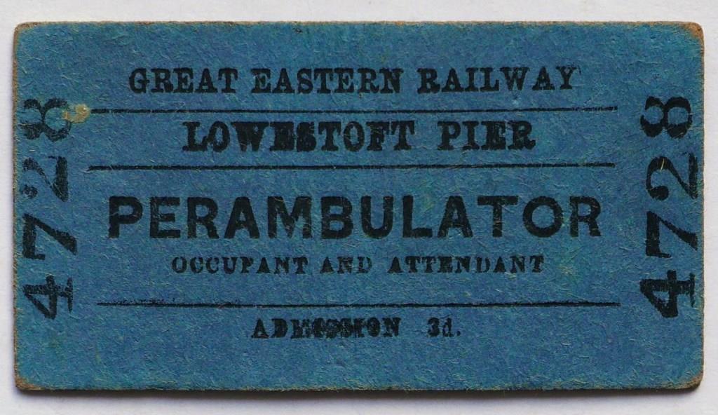 702 | Great Eastern Railway Edmondson type Lowestoft Pier ticket for a perambulator. Appears unissued, slight back damage. | £60 |  |