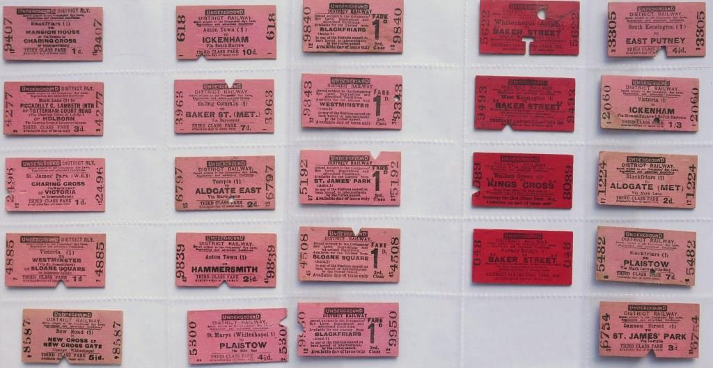 712 | Approx 53 Underground District Railway 3rd class whole Edmondson tickets on pink coloured card. Most issued. Creasing to a couple. | £42 |  |