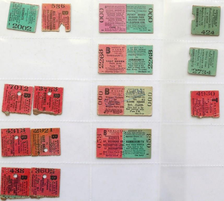 717 | 4 District Railway & LGOC whole Edmondson tickets and 11 half Edmondson tickets. Most issued, one over stamped ‘specimen’. | £16 |  |