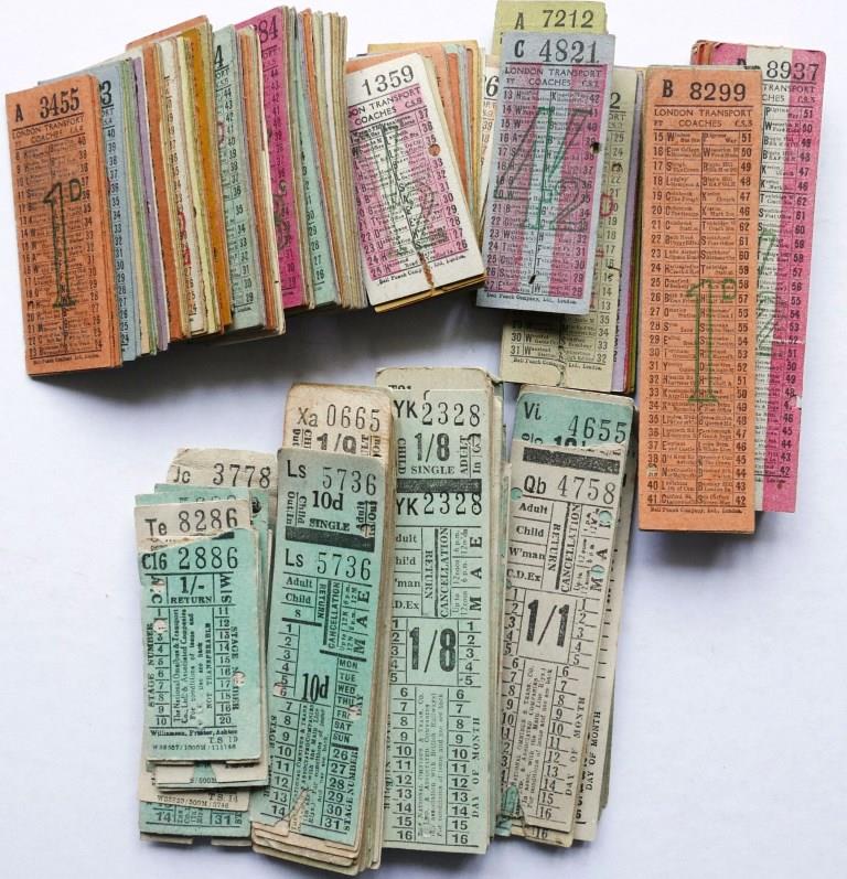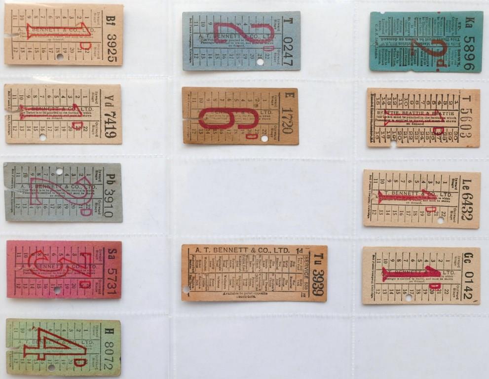 723 | 12 Biss Bros (Bishop’s Stortford) numerical punch type tickets. Values up to 1/1. Plus an unused paper ticket. | £22 |  |