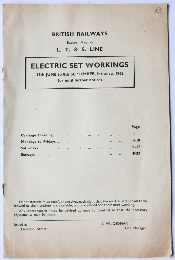 74 | BR(E) LT&S Line foolscap sized booklet ’Electric Set Workings’. 23pp proof copy dated June 1963. | £55 |  |