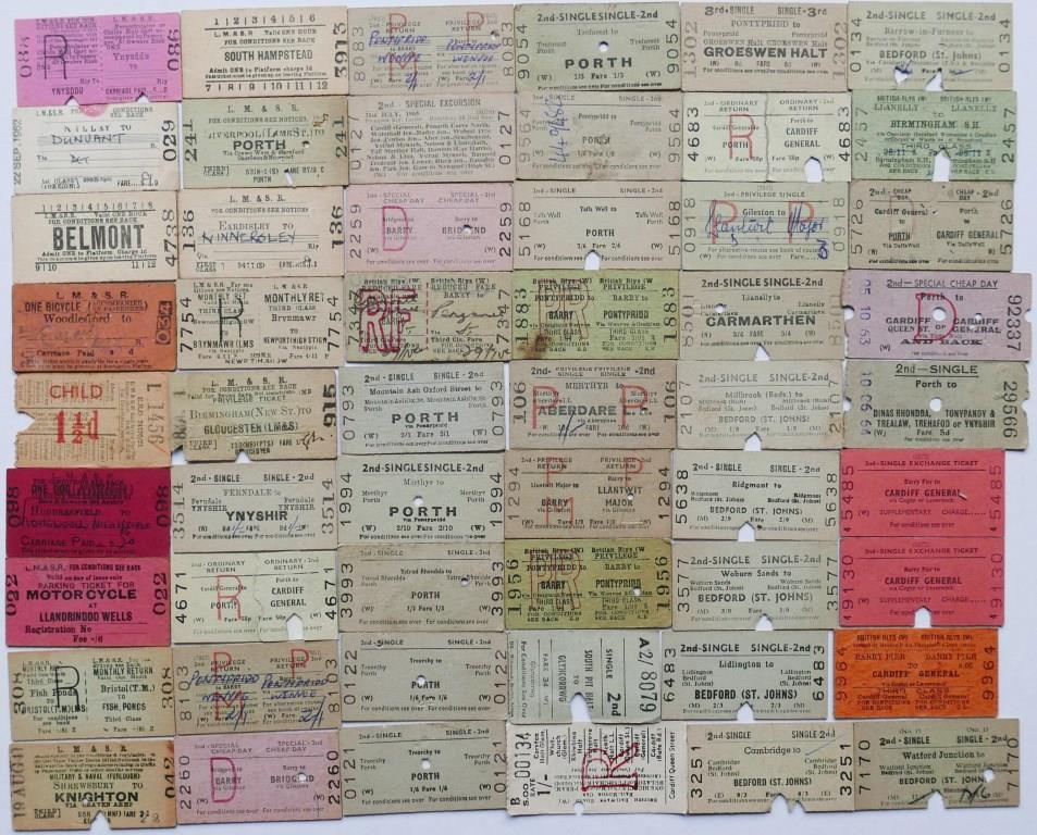 759 | Approx 75 BR mostly whole Edmondson tickets. Mainly Western Region South Wales area. Most issued, some creased. Plus 11 LMS whole Edmondson tickets including platforms. | £30 |  |
