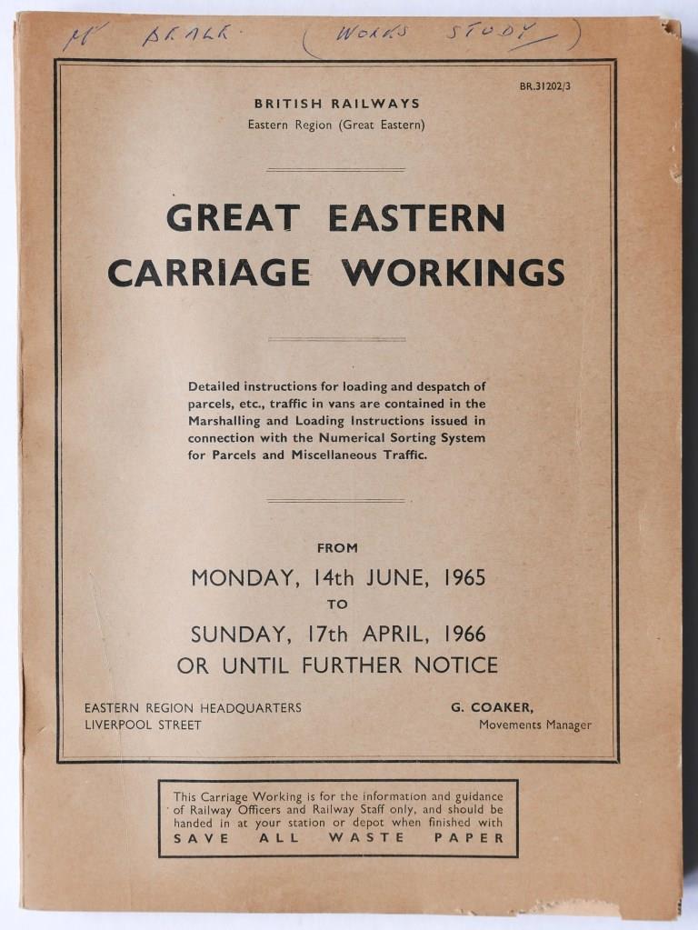 78 | BR(E) Great Eastern booklet ‘Great Eastern Carriage Workings’. 242pp dated June 1965. | £150 |  |