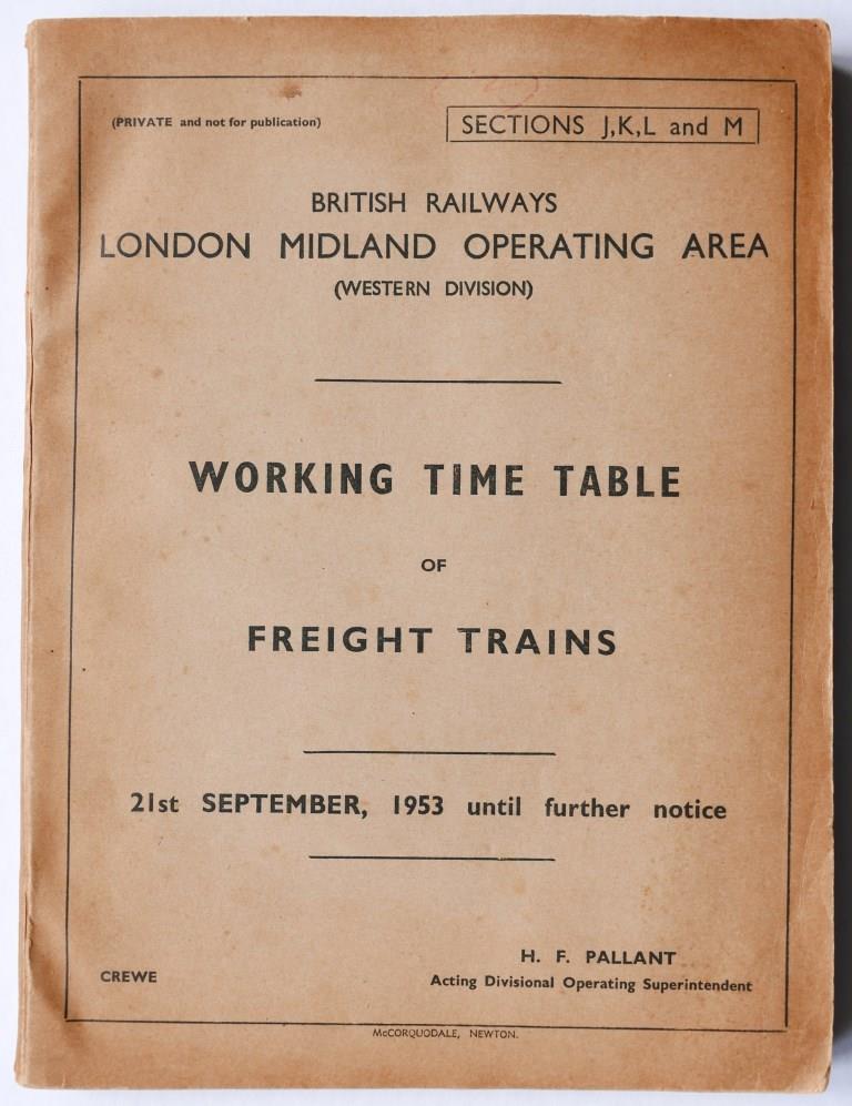 87 | BR(M) Western Division sections J - M working timetable of freight trains. 200+pp dated September 1953. | £110 |  |