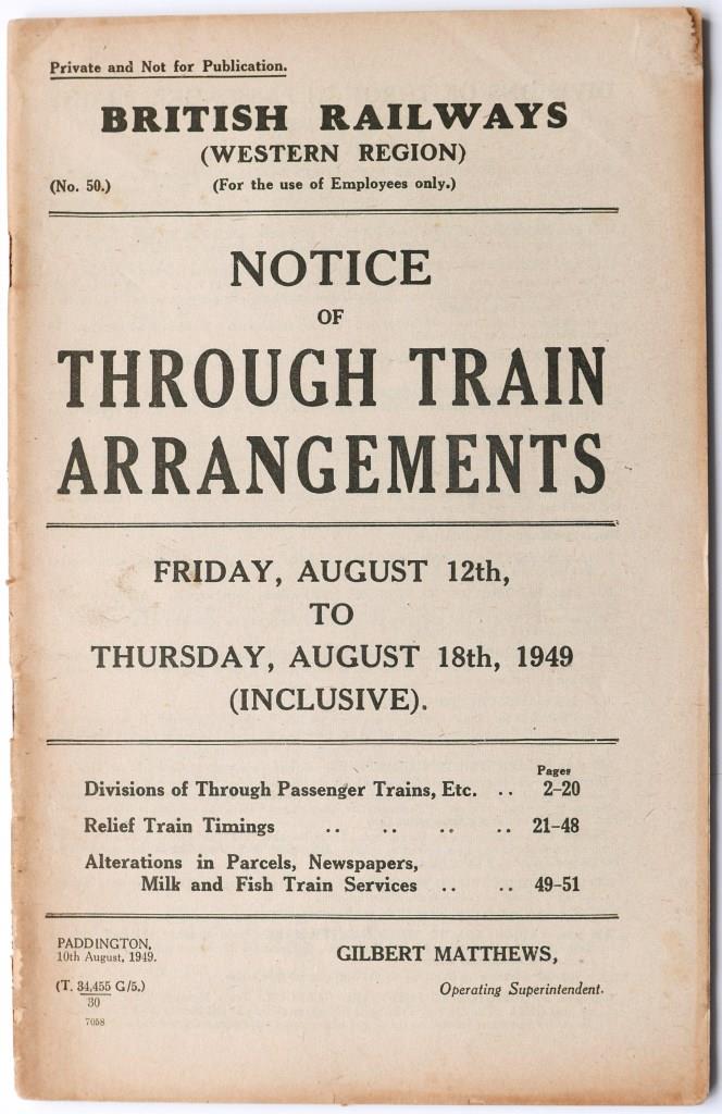 104 | BR(W) ’Notice of Through Train Arrangements’ No.50 dated 12th August 1949. 51pp. | £36 |  |
