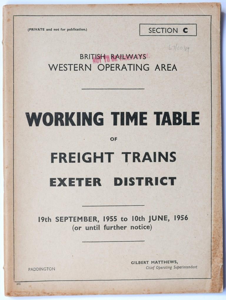 115 | BR(W) section C working timetable of freight trains Exeter District. 82pp, dated September 1955. | £24 |  |