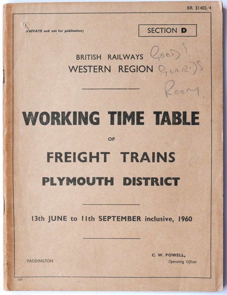 116 | BR(W) section D working timetable of freight trains Plymouth District. 111pp, dated June 1960. | £19 |  |