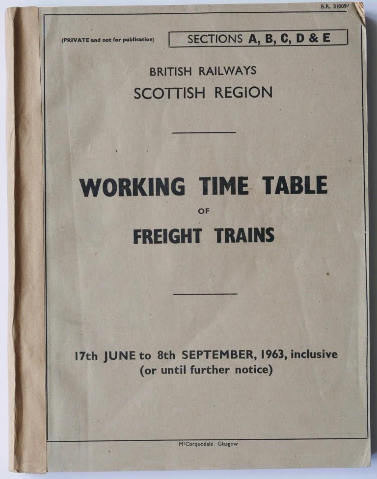 119 | BR(ScR) sections A - E working timetable of freight trains. 200+pp dated June 1963. Spine taped. | £48 |  |