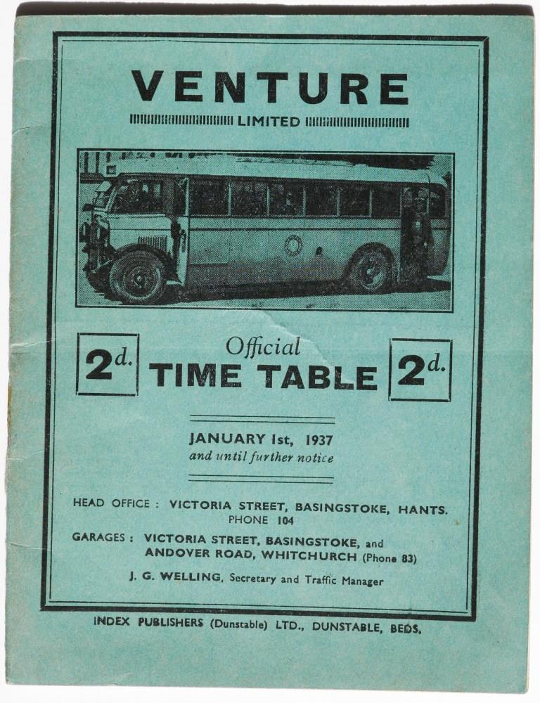 150 | Venture Limited (Basingstoke) timetable booklet. Blue coloured photo illustrated covers show company single decker. 32pp, dated January 1937 Slight staining to bottom edge. | £75 |  |