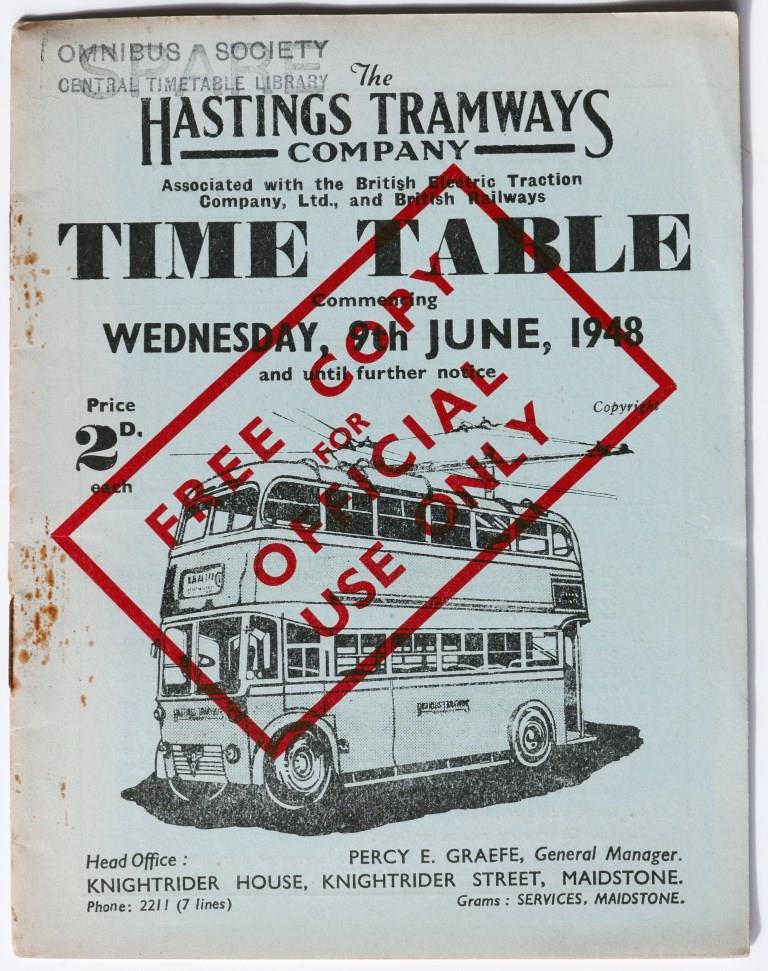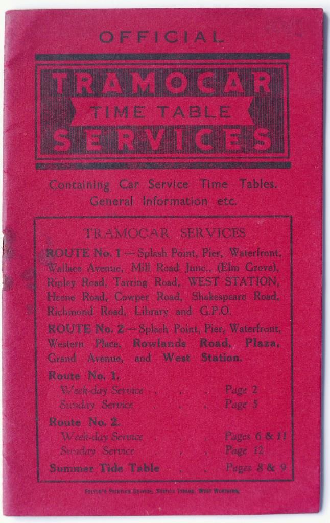159 | Tramocar Services (Worthing) timetable booklet. Red covers, 16pp dated 1938. Rusty staple removed. | £50 |  |