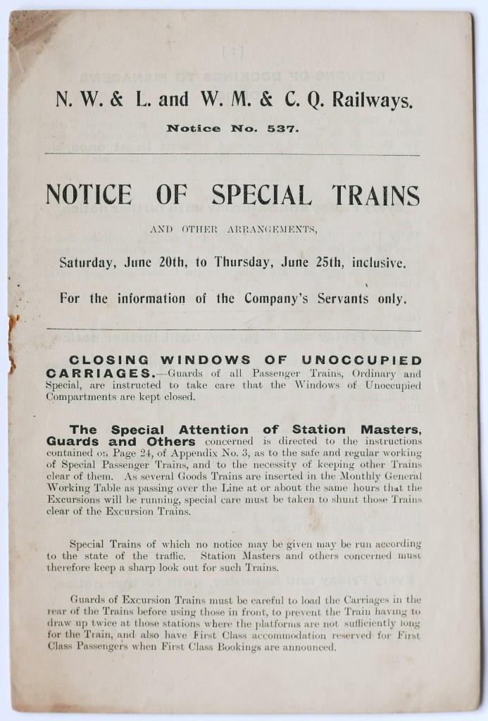 107 | BR(W) ’Notice of Through Train Arrangements’ No.40 dated 24th June. 37pp. | £36 |  |