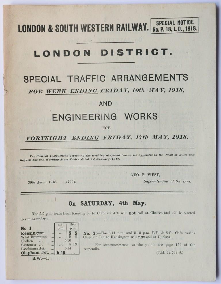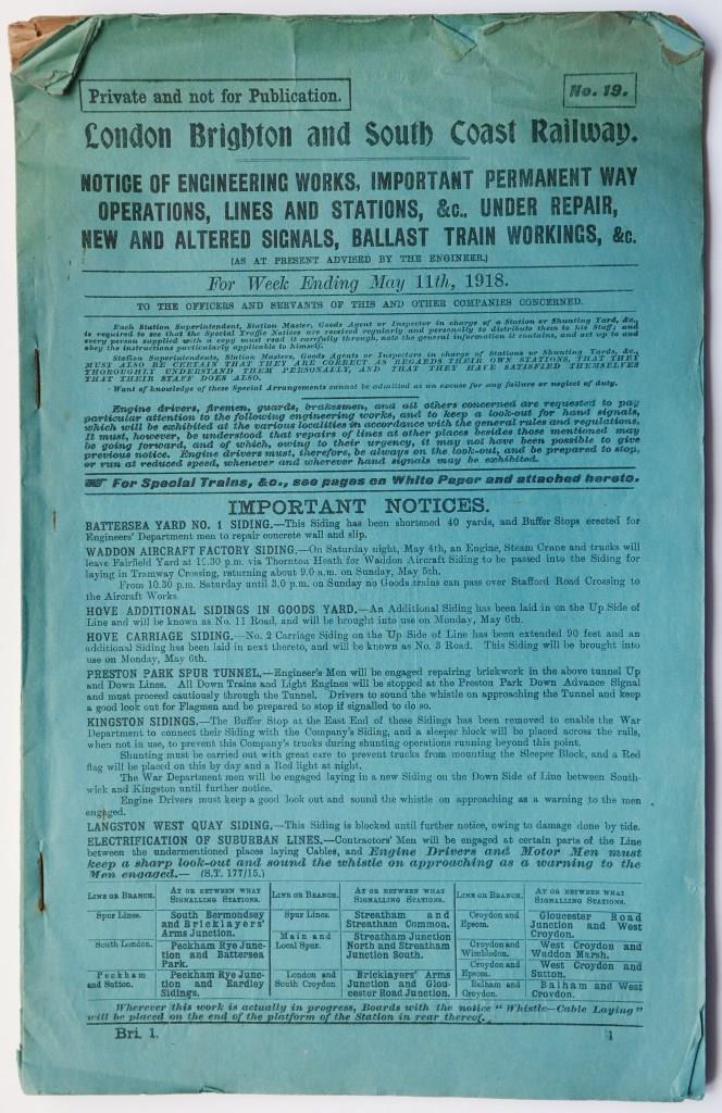 701 | SR London (East) and Southern Divisions notice No.10 ‘Engineering Works’. 27pp, printed on green paper, dated 12th March 1926. | £30 |  |