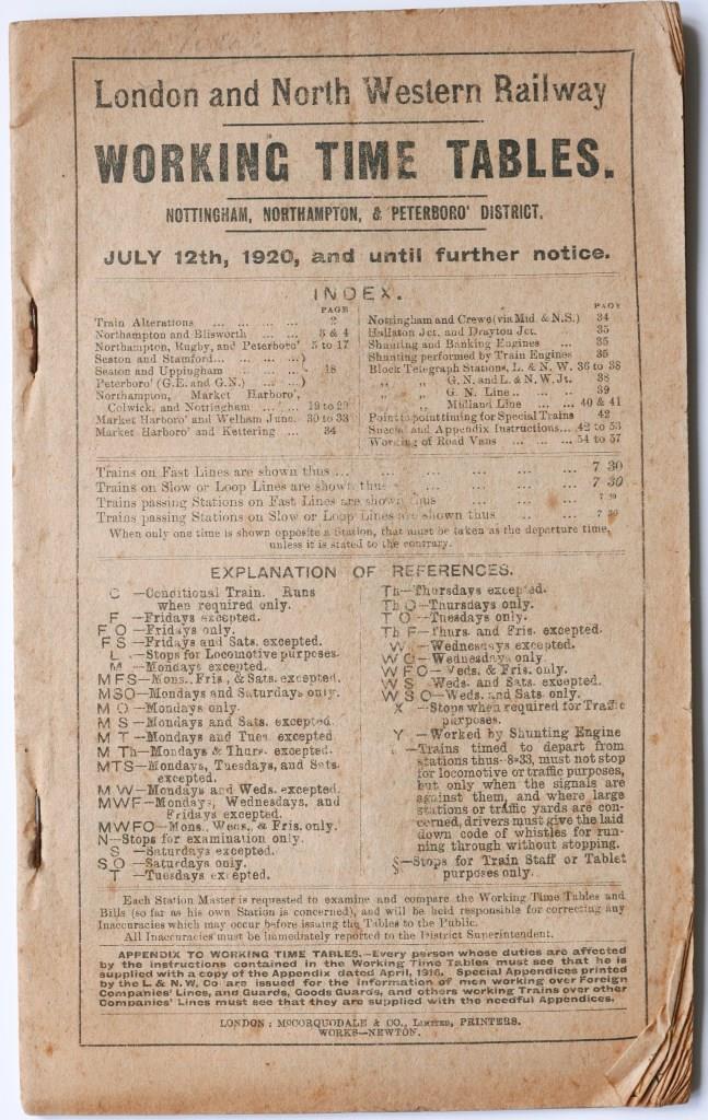 646 | LNWR public timetable booklet dated May 1891. Foolscap sized, 134pp plus fold out out map. Red and black coloured pictorial covers show system map. Spine taped. | £32 |  |