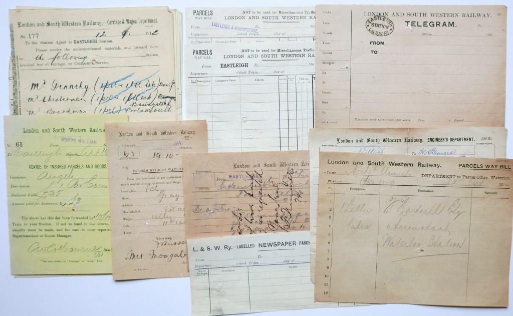 649 | 18 items of LSWR paperwork including telegram, memos, waybills, invoices, etc from various locations. Many dated 1912. | £22 |  |
