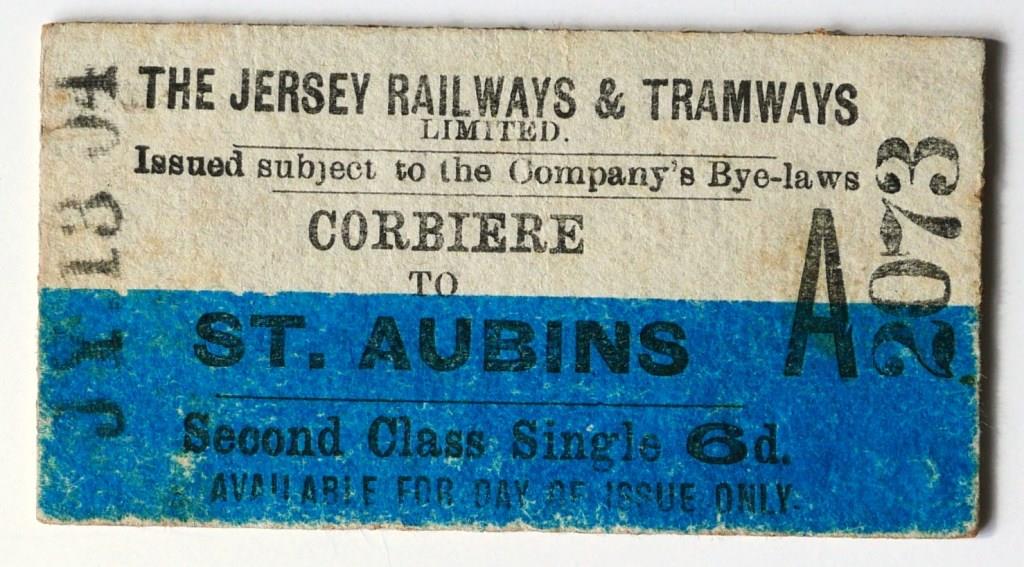 718 | Jersey Railways and Tramways Ltd whole Edmondson 2nd class single from Corbiere to St.Aubins. Issued, minor back wear. | £65 |  |