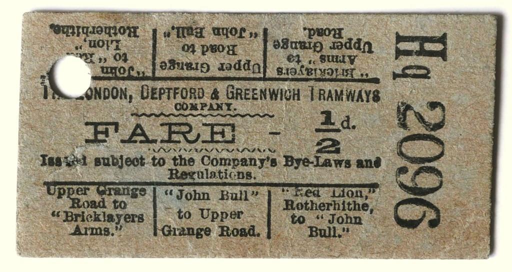 719 | London, Deptford & Greenwich Tramways ½d geographical punch type ticket. | £60 |  |