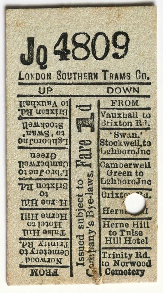 724 | London Southern Trams Co 1d geographical punch type ticket. | £11 |  |